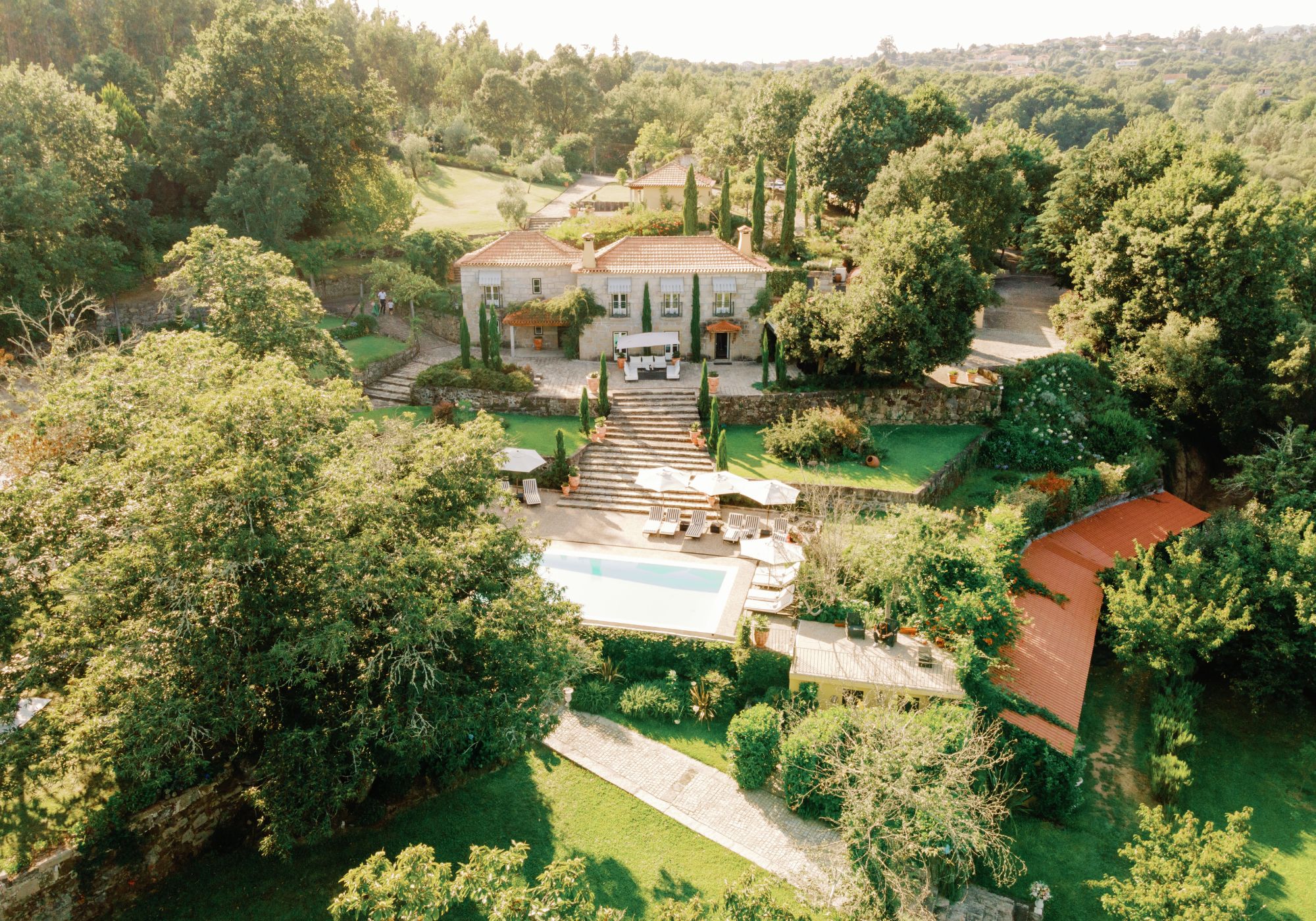 The estate, its forest, lush gardens with a breathtaking lake, scenic views, the private villa where charming details and timeless comfort welcome in an exclusive stay and invites to joy, to party and celebrate in a wedding the original love